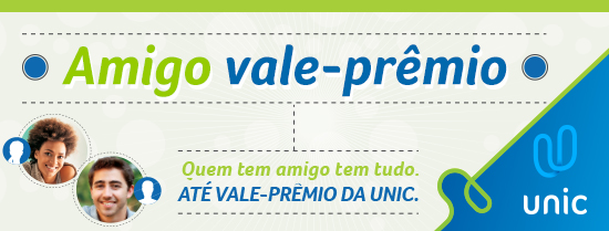 | Comece o semestre indicando seus amigos para estudar na Unic eganhe até R$ 300 em vale-prêmio após a confirmação da matrícula. |